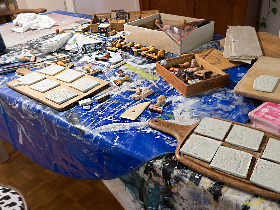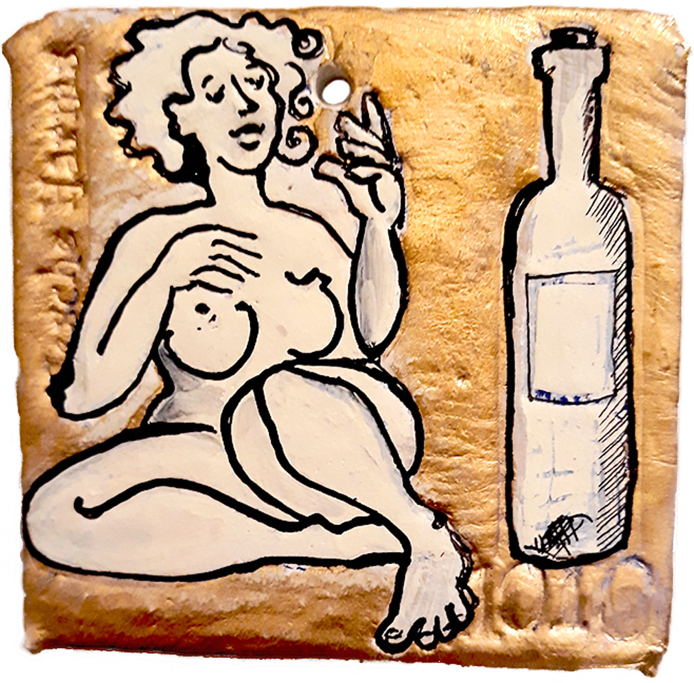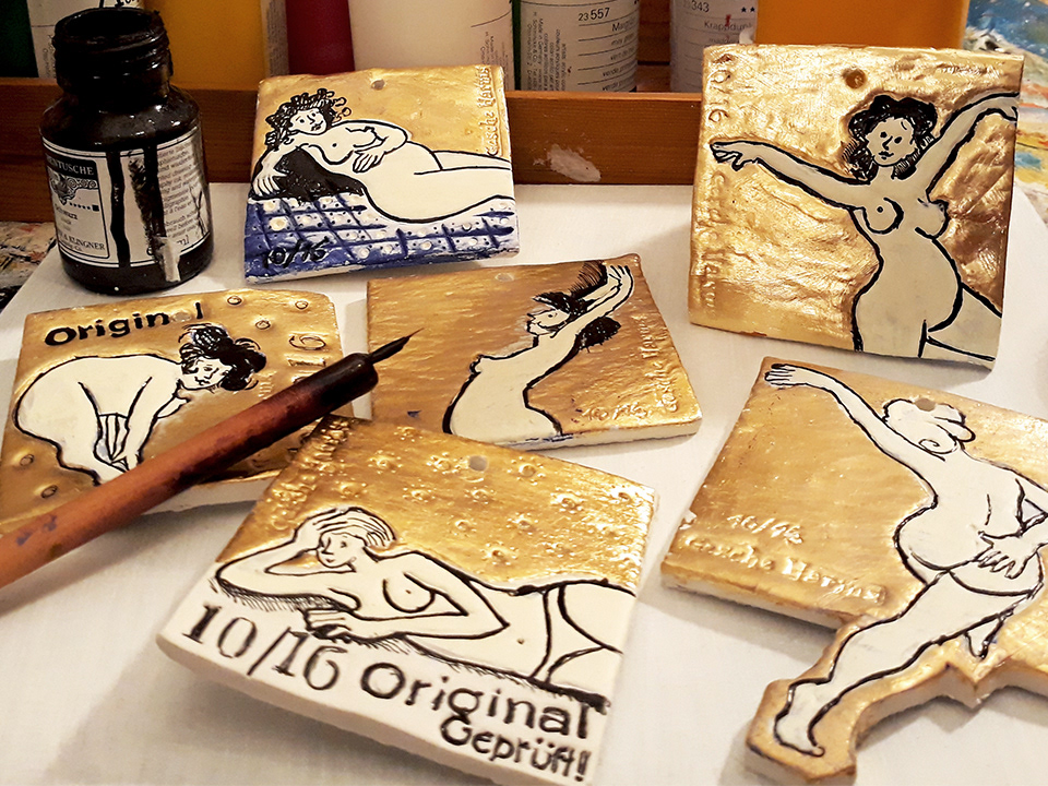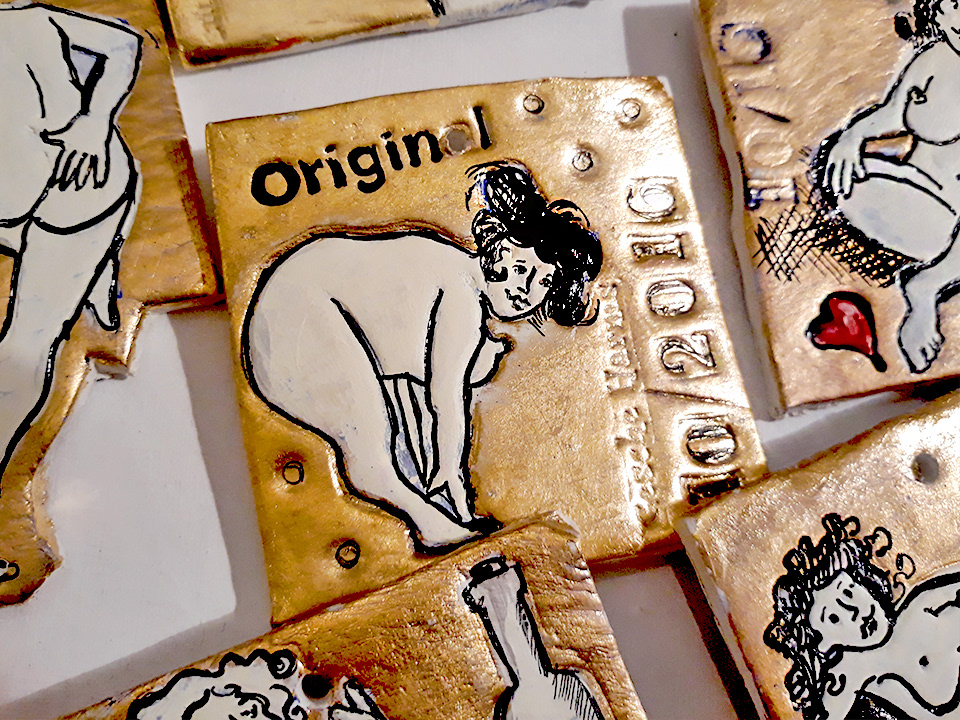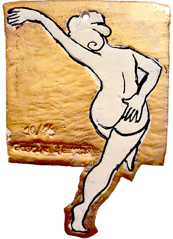 Modelliermasse, Schlagmetall, Acryl, Tusche