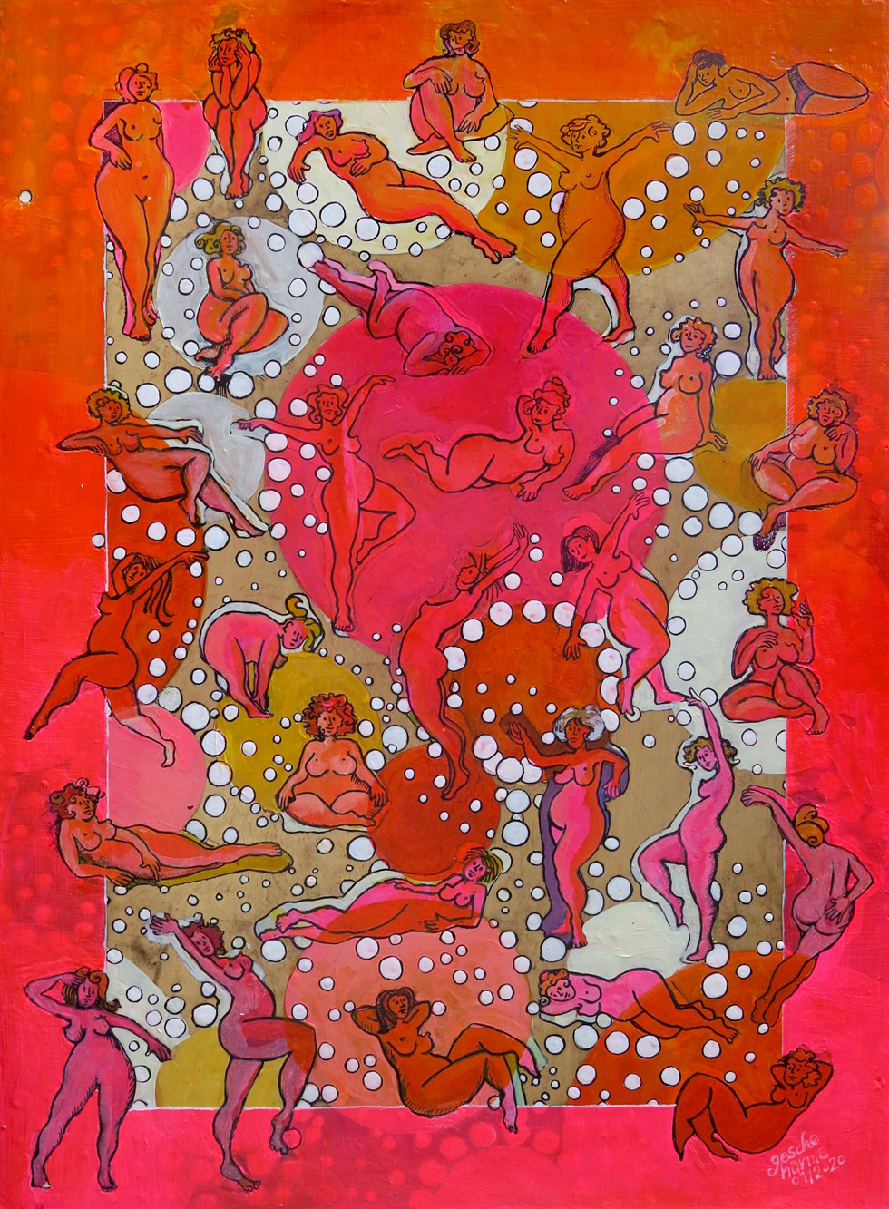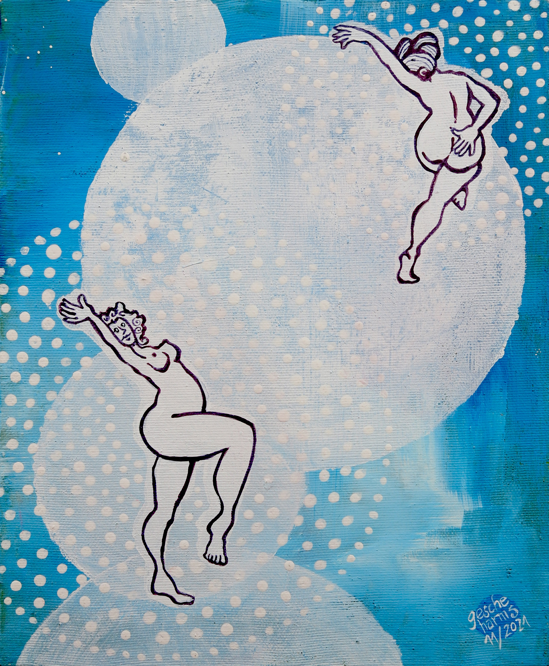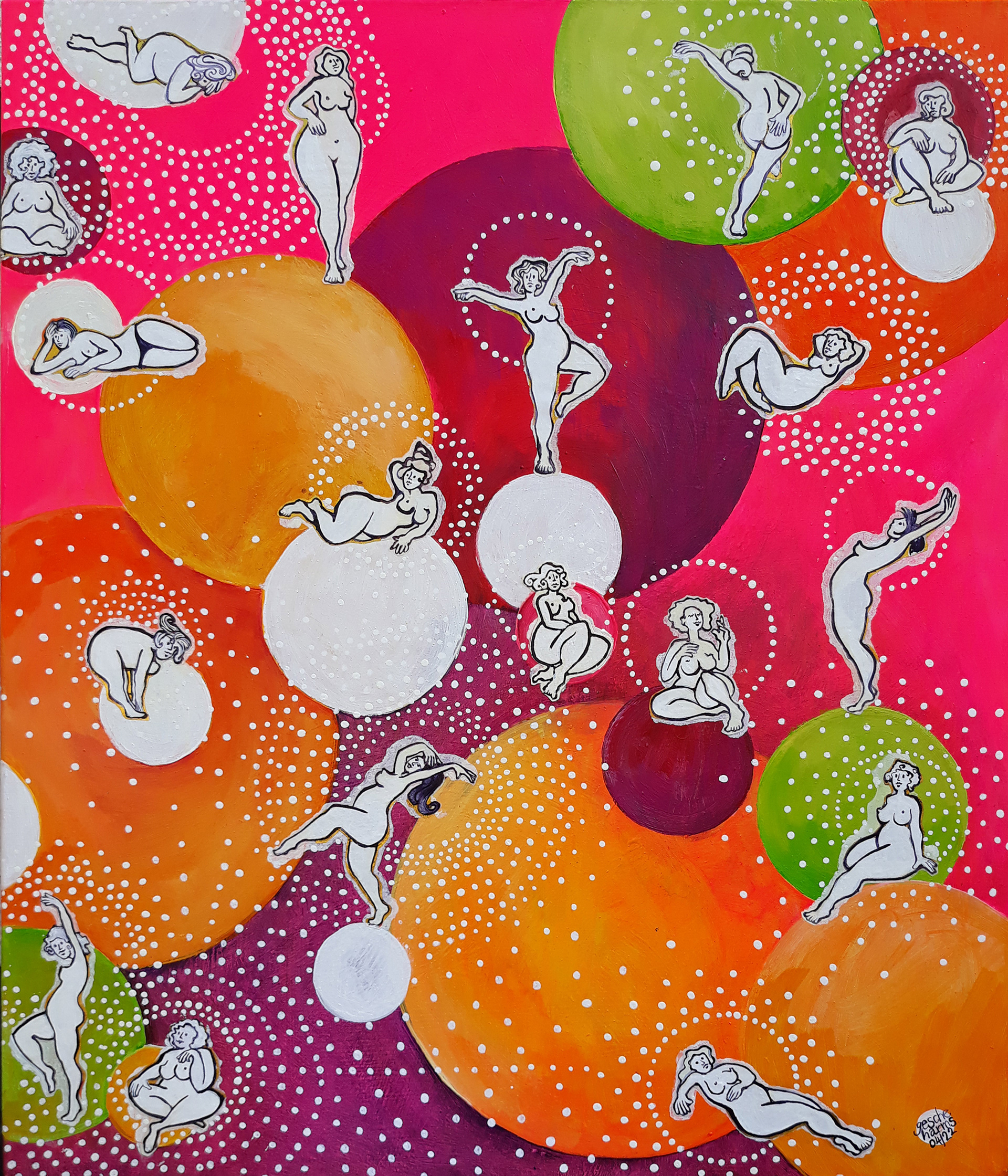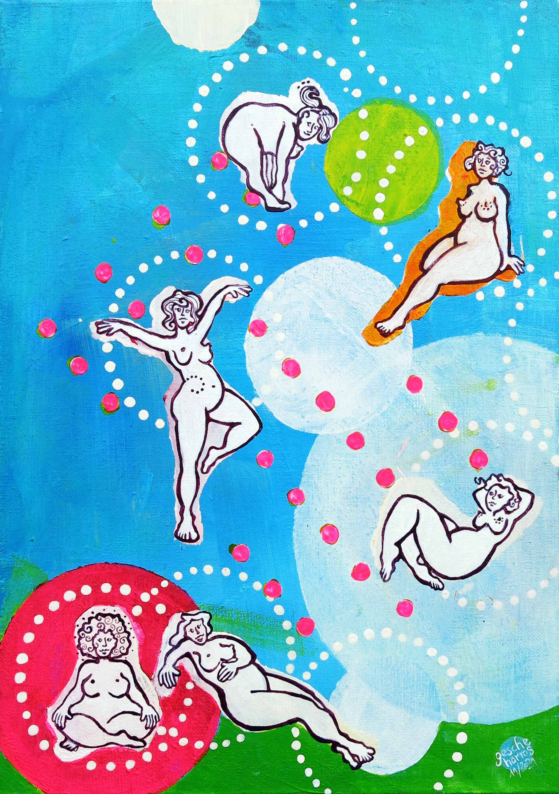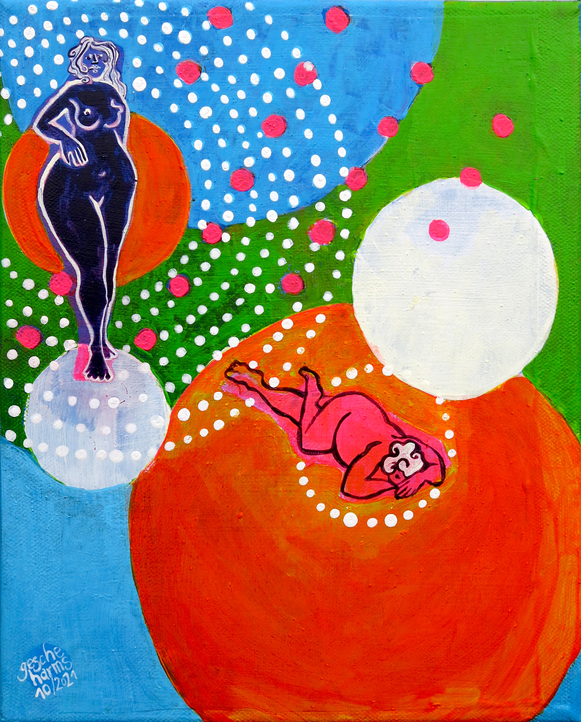Jede Frau hat Ihre Ausstrahlung, eine Aura, nimmt mehr oder weniger Raum ein. Jede dieser persönlichen Sphären überschneidet sich in manchen Bereichen mit anderen und führt zu gegenseitiger Beeinflussung. Versuch einer Darstellung mit meinen Damen.